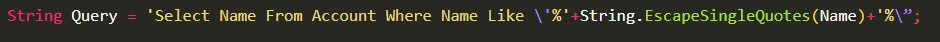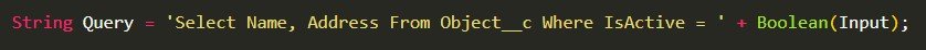 When queries are built directly with user data inlined or query text, instead of using type-safe bind parameters, malicious input may be able to change the structure of the query to bypass or change application logic. This is called a SOQL injection attack.