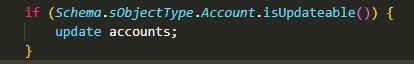 - Schema.sObjectType.Account.isUpdateable() – before updating